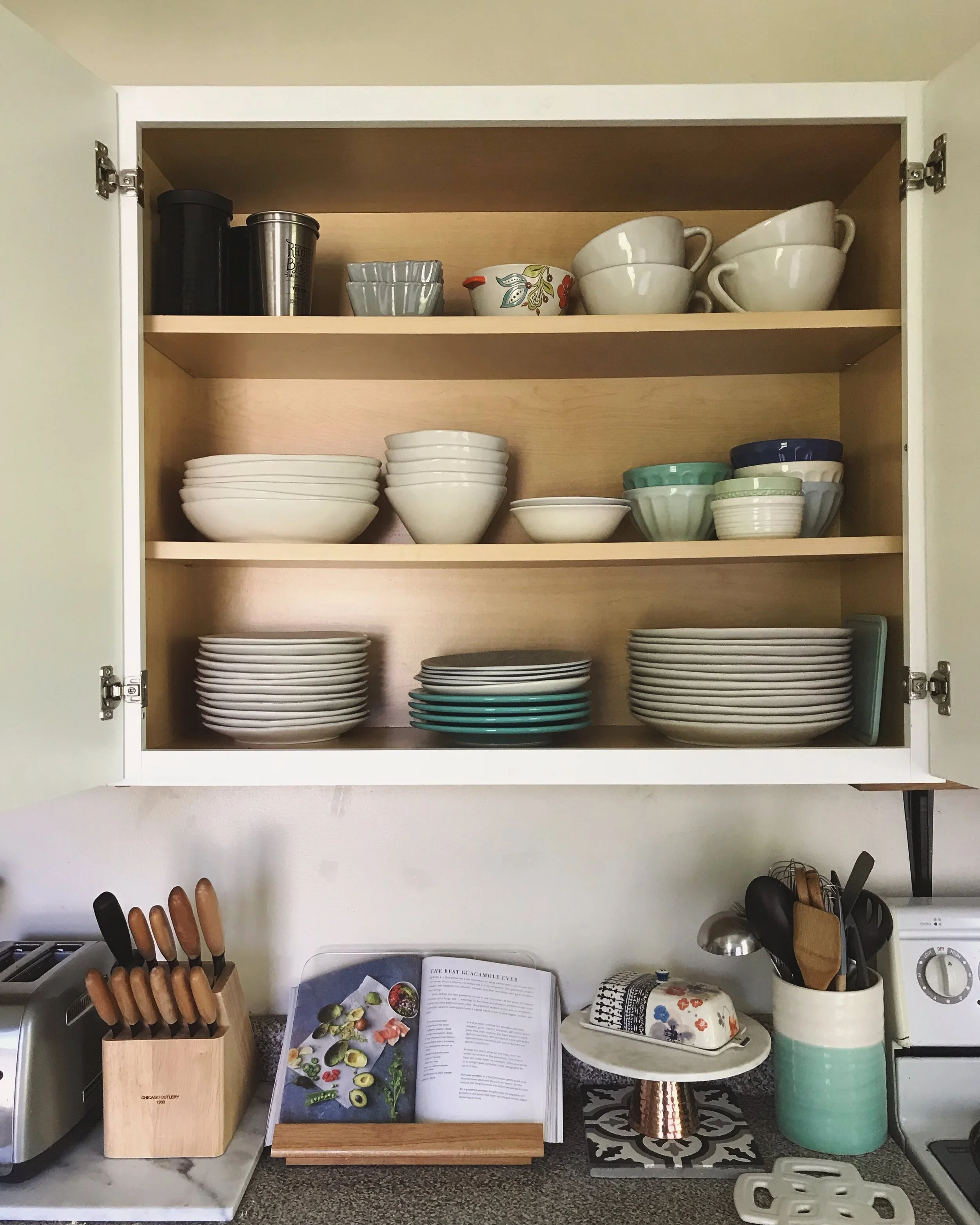 2- Eliminate unnecessary duplicate items. If you have more than one can opener, mixer, blender, etc. they are probably taking up space in your kitchen without adding functionality. Depending on how often you cook and for how many people, think about the quantity of baking dishes, pyrex bowls, wooden spoons, and spatulas you really need. Chances are, you only have need for a favorite few dishes that you use regularly.