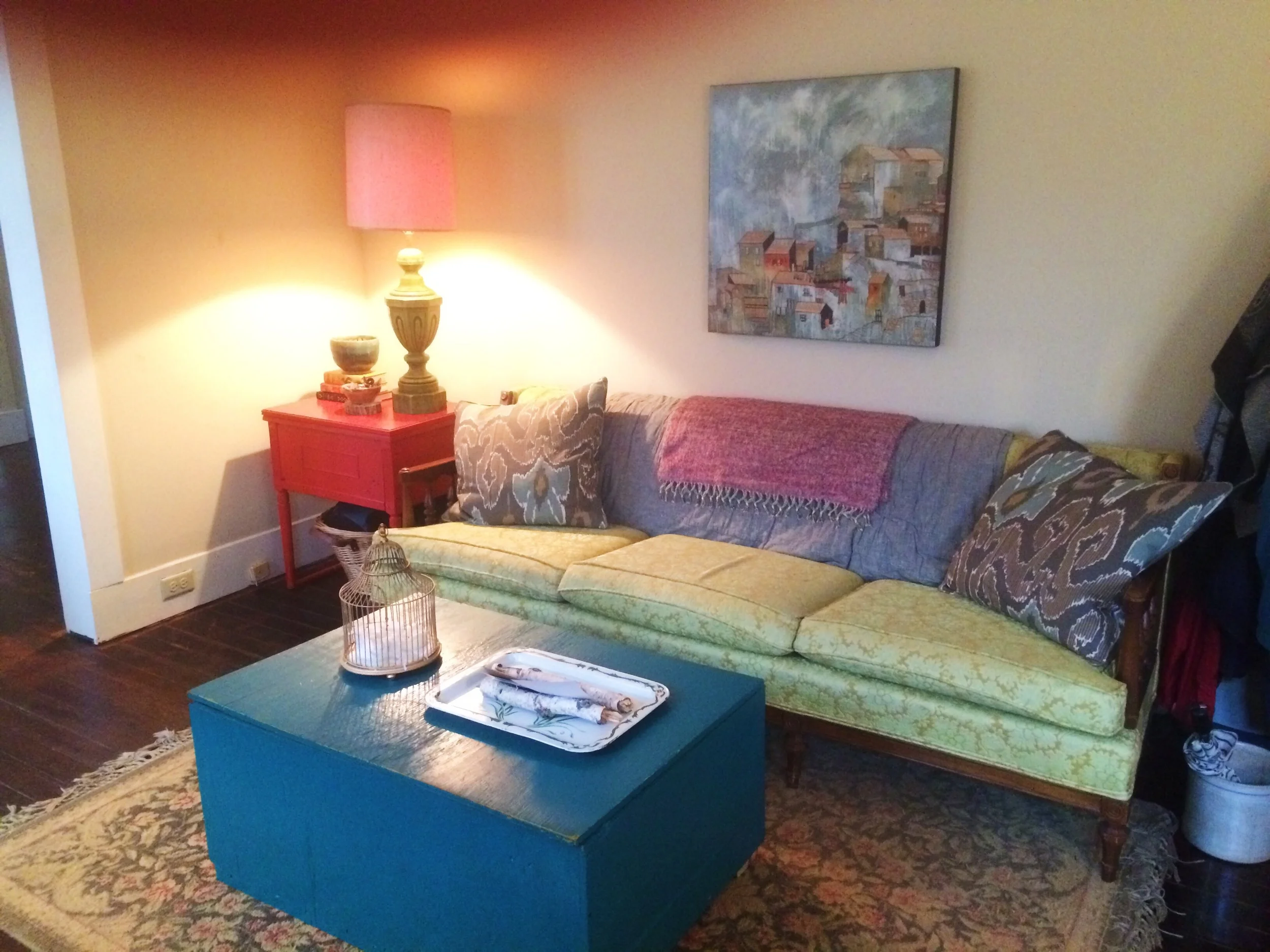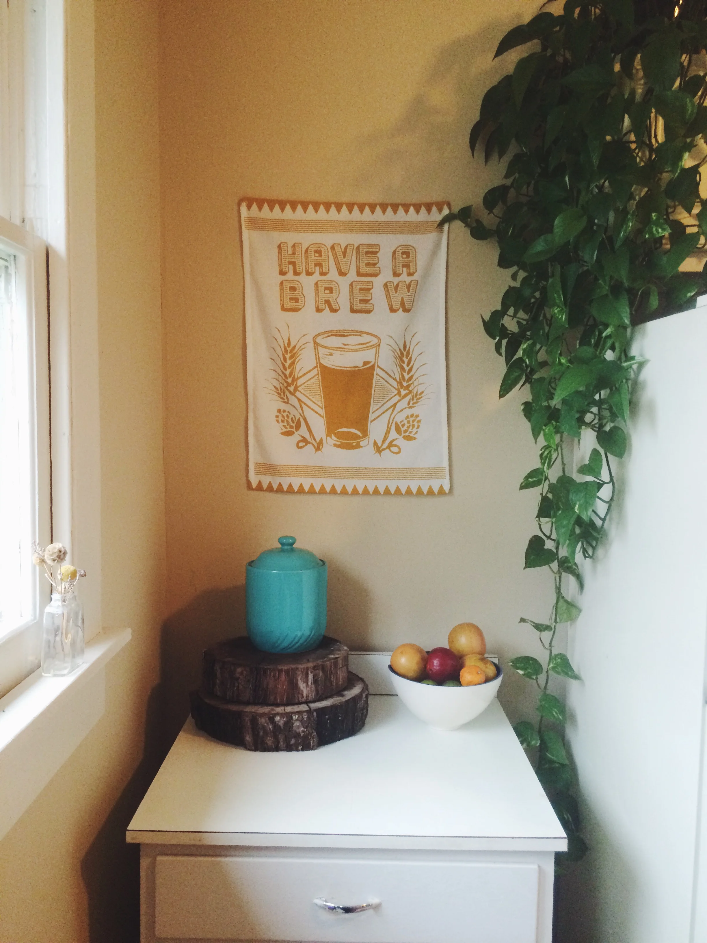Lindsay is the first renter we have interviewed and we were especially interested in what she had to say about decorating a rental. Upon moving into their home they were asked not to paint or hang large things on the wall. As a result, Lindsay has used her limitations to find creative ways to dwell and make the space feel like home. Large art pieces lean against the walls, thumb tacks or Velcro strips are used for lighter objects. Lindsay has found that sometimes limits help you see things in new ways, limits force you to think creatively.