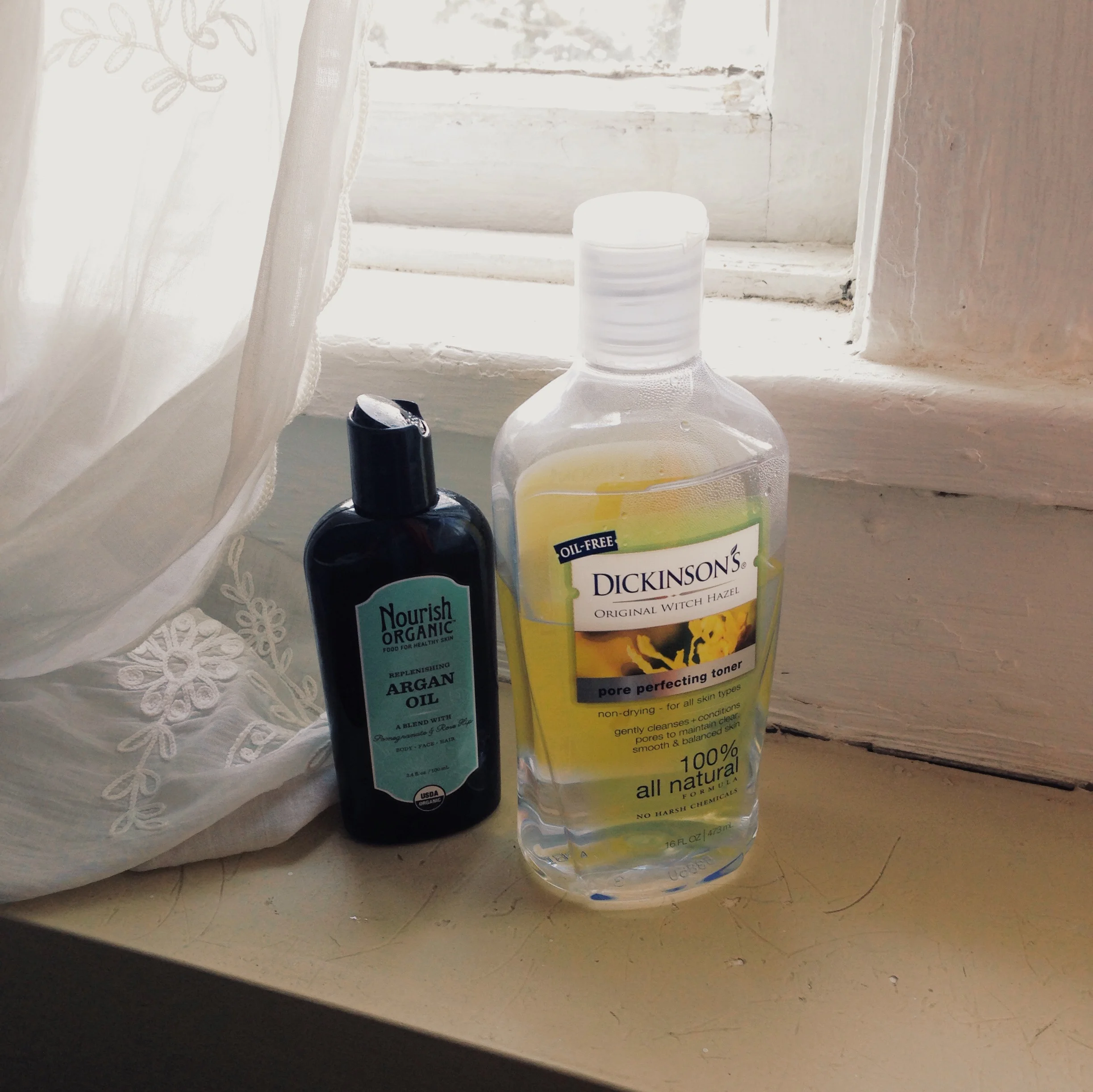 Be Nice To My Skin: Witch-hazel to remove makeup and clean pores and Argan oil to moisturize. Every night, people. Every. Night. (I've been known to wake up in yesterdays makeup in the past)