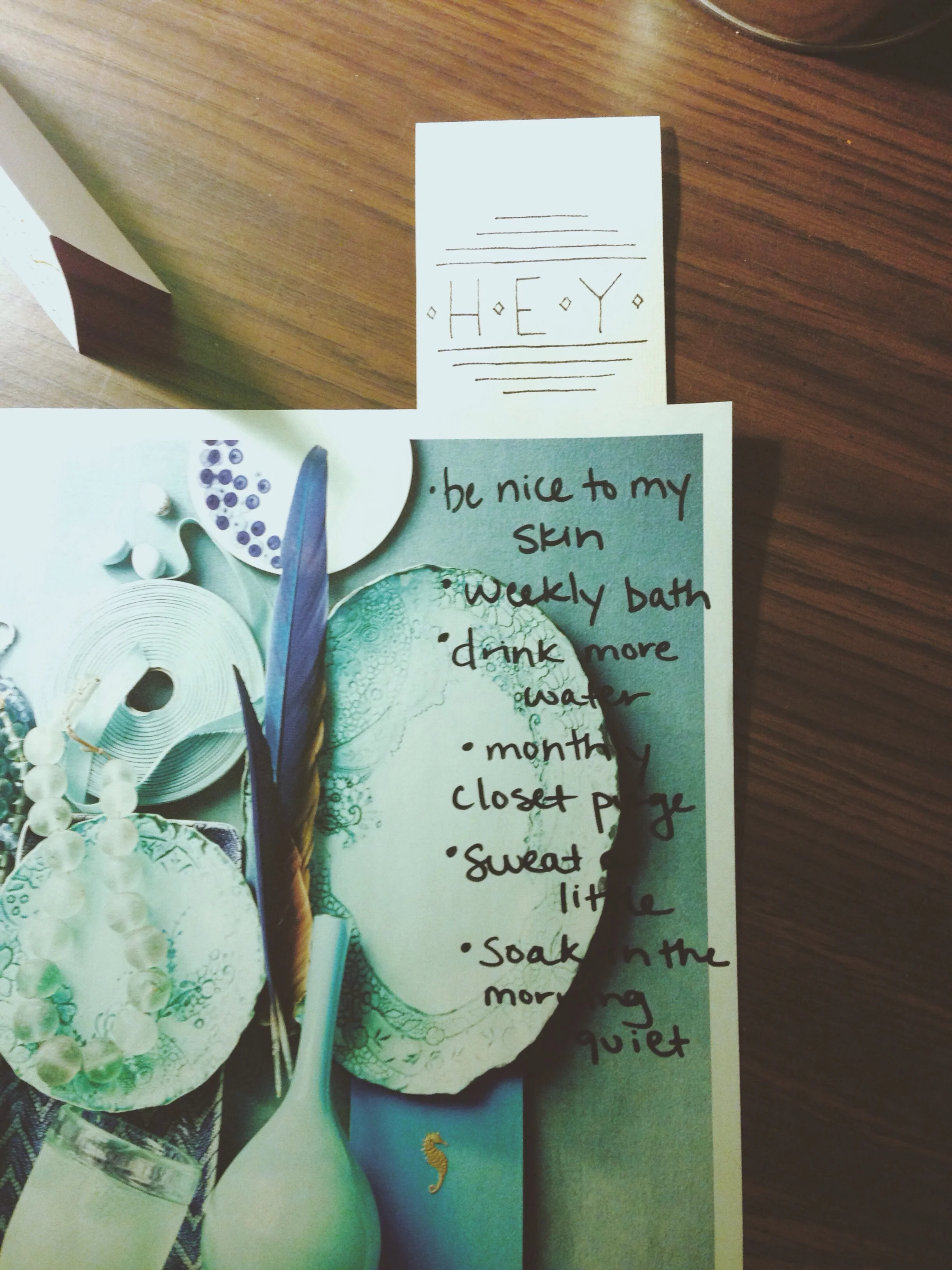 Drink more water: I always forget, but two things have been helping me remember to stay hydrated. 1. I bought a pretty water bottle that I like taking with me places and that I like drinking out of. 2. I must say yes anytime anyone offers me water-- I never noticed how often I am offered water until I started following this rule.