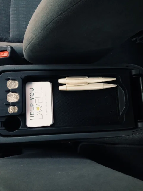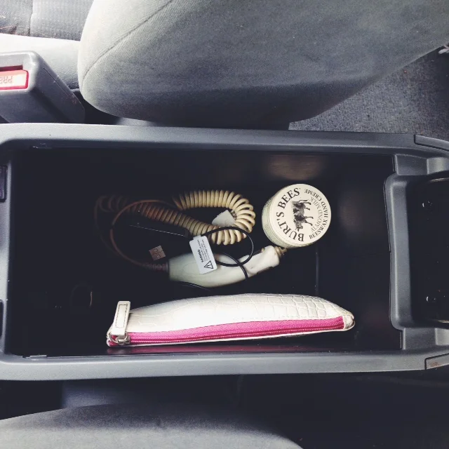 1. The center console is your friend! Having never had a center console before, I'm super pumped about making good use of it. The lower compartment is ideal for chargers, wet ones, and umbrellas. The upper compartment is the perfect place to keep a few pens, spare change and business cards. Living in a downtown neighborhood, I park on meters frequently and the change slots are super handy so I don't have to fish through my purse to find quarters. Am I the only person that actually uses this feature? Maybe, but I love it!