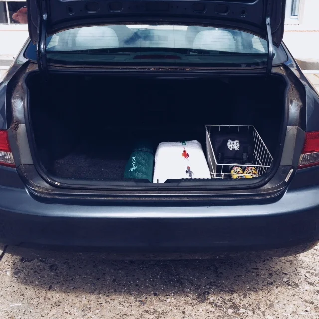 3. The trunk is tricky-- it's out of sight which is good, but can also turn into a dark pit. My goal is to only keep car trouble necessities (ex. jumper cables, tire pump) a yoga mat, and a picnic blanket in it. A crate or basket works well to contain those items so they aren't rolling around when you drive. One other idea I had was to keep another box in the trunk to collect items I don't need that are thrift store bound. If I can get the items into my car, I'm way more likely to drop them off in passing instead of letting them sit in the corner of my kitchen for months.