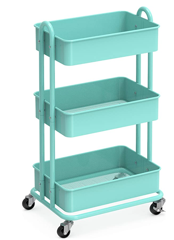 The possibilities for this cart are almost limitless! Interested in giving it a shot? They are available in a variety of colors and designs on Amazon or you can pick one up at Lowes or Home Depot. This one even comes with dividers.
