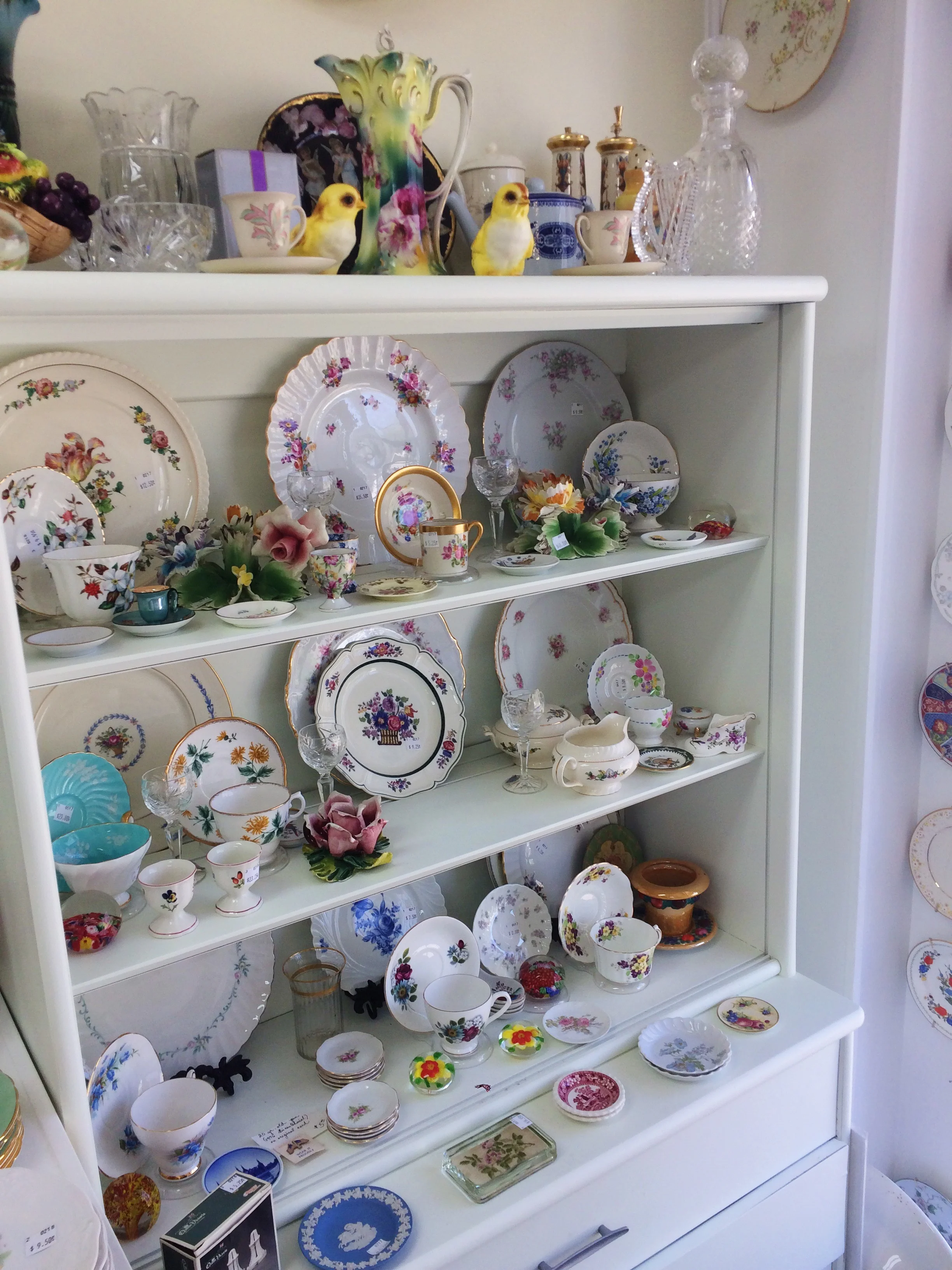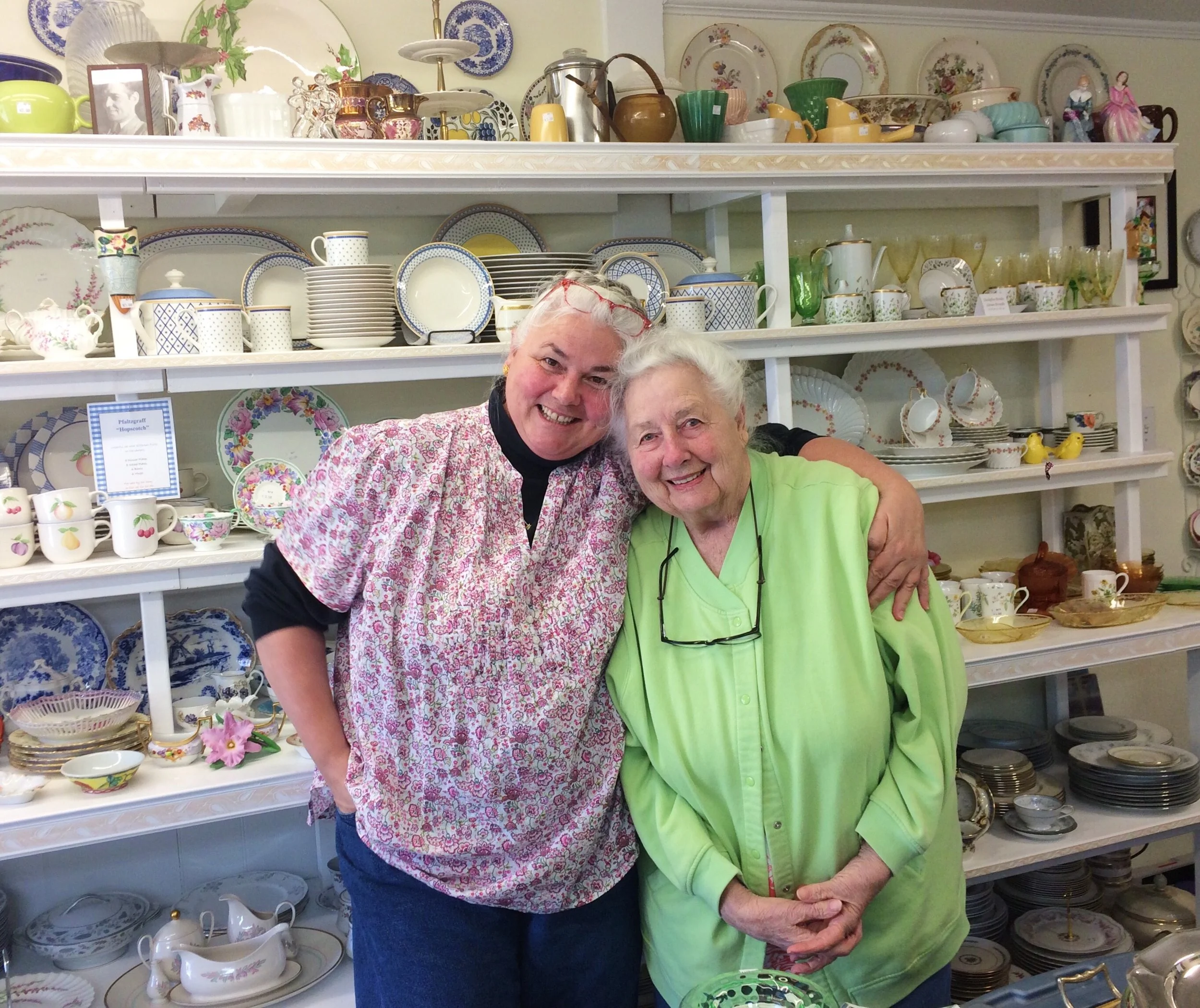 With one of the most interesting career paths of anyone I've ever met, Flanders has been a florist, gardener, server, real estate agent, jewelry shop owner, certified egg handler on a chicken farm, horse trainer, organic veggie farmer, and was a singer in the band the "Red Hot Mammas and Sultry Ladies" that covered torch songs from the 30's and 40's. Flanders came to Knoxville in 2012 by way of Rough and Ready, CA (yes--- that's really the name of the town!!). Doing Dishes became a reality about 1.5 years ago and has quickly become Help You Dwell's go-to spot and highest recommendation to clients who are looking to sell china and dishware. Flanders has been collecting china since the mid 80's and started selling it in '92 to support her dish buying habit. She comes by her love of dishes naturally-- her mother Doris (who you can often find in the shop) designed a line of china for the Carmel Valley Ranch Resort in the 80's. If you think Flanders sounds interesting, you should ask her mom about the time she almost adopted an elephant.